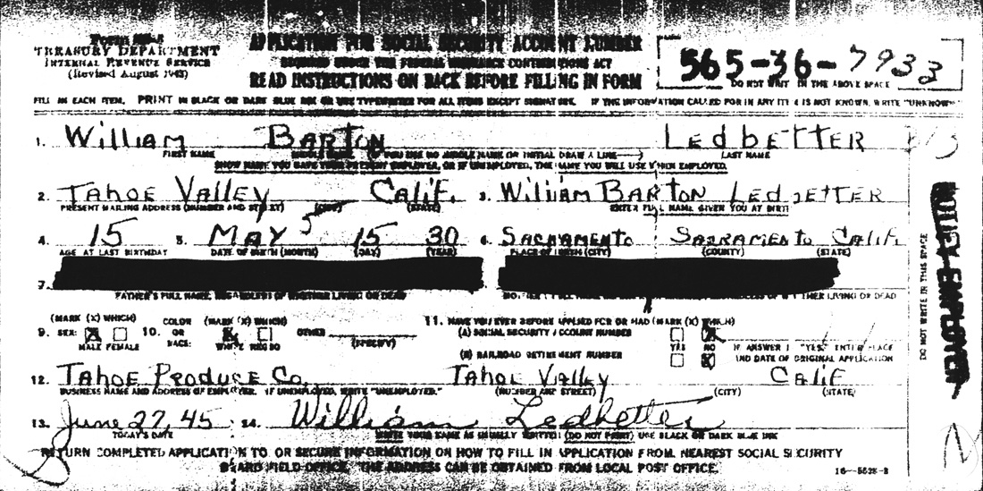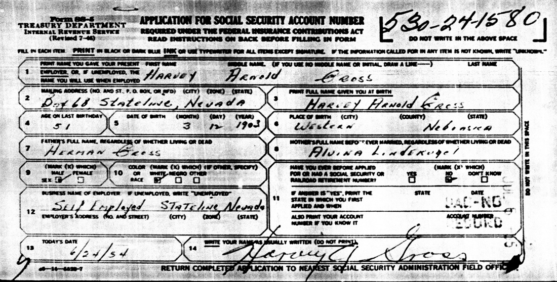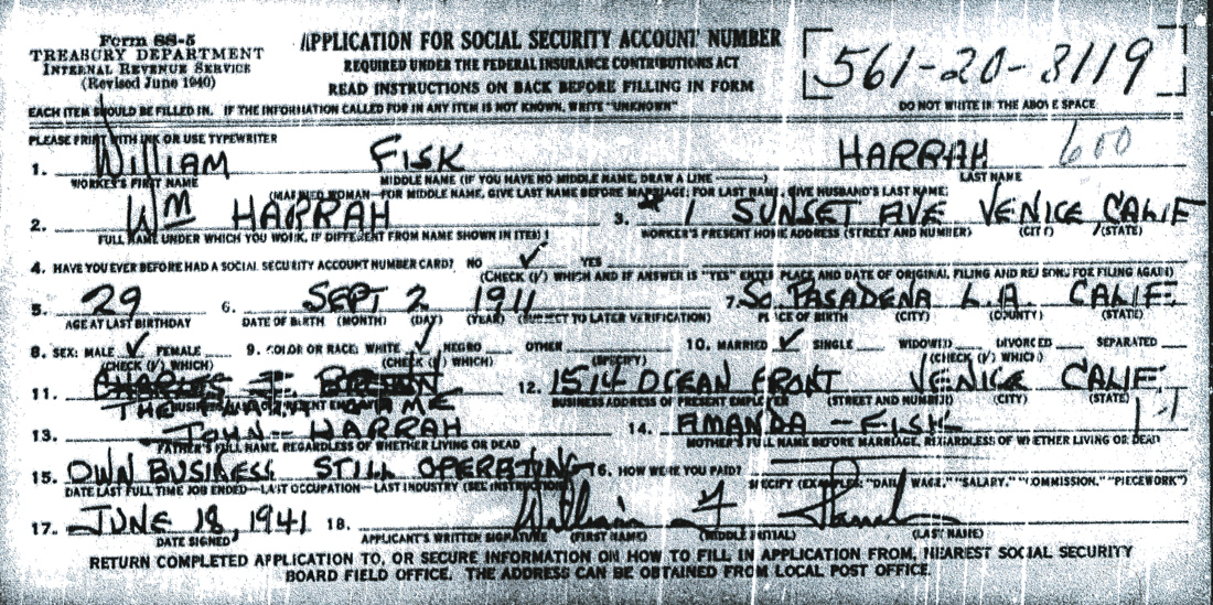 Form SS-5: Application for Social Security Number: William Fisk Harrah